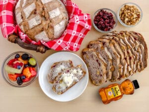 What’s better than a few loaves of homemade bread? The honey and cranberries add the perfect amount of sweetness to this Honey Cranberry Oat Bread, and the chopped walnuts add a little crunch! Make this for your family to snack on or serve it up at your next party … either way, everyone is sure to love it!