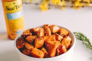 - 3 to 3 1/2 pounds sweet potatoes, cubed