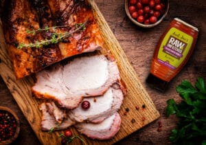 Combine cranberries, AUNT SUE’S® Honey, orange peel, and cinnamon, dump over roast.